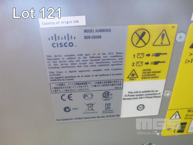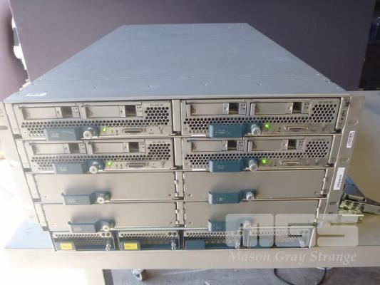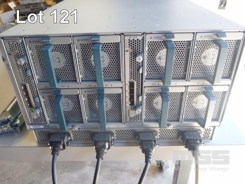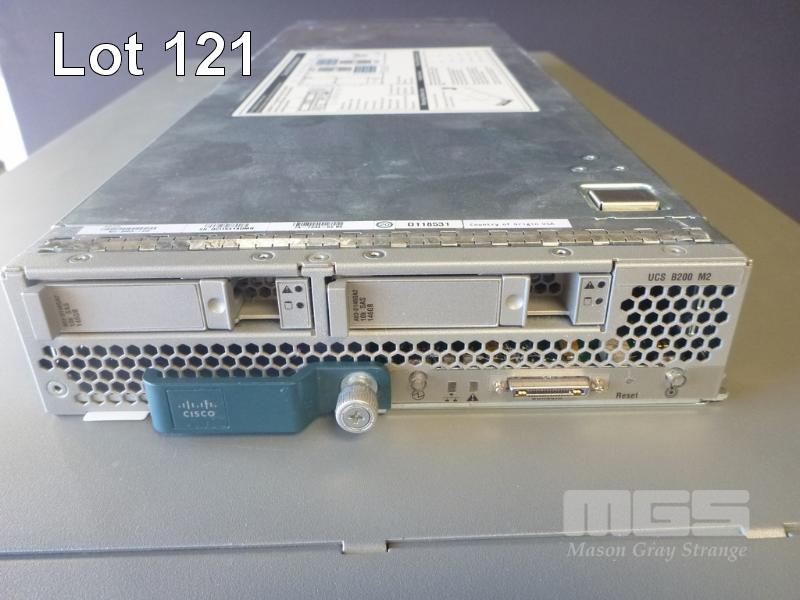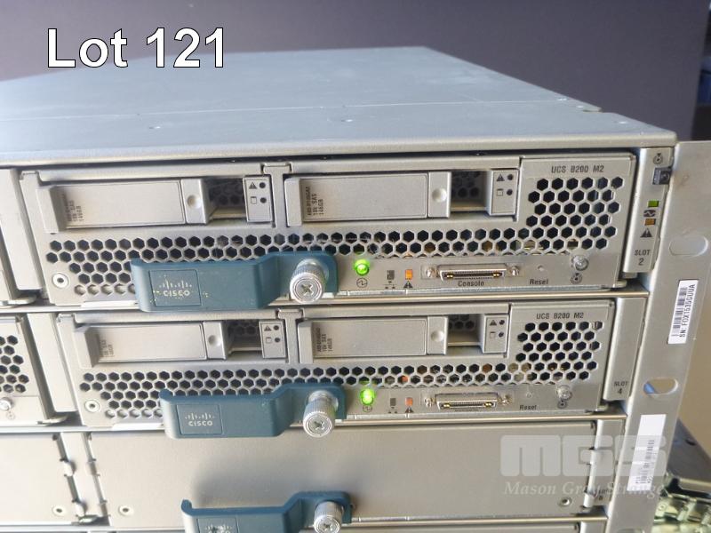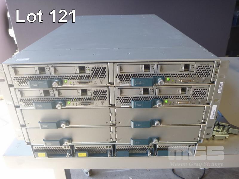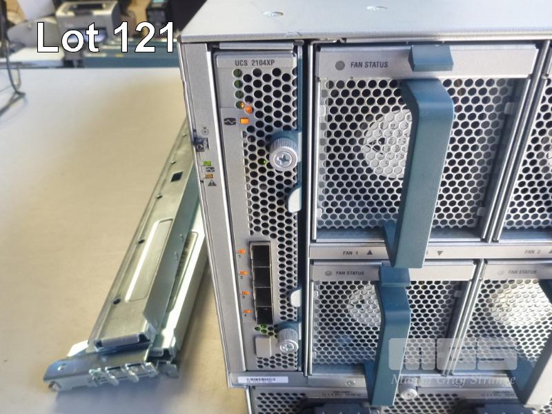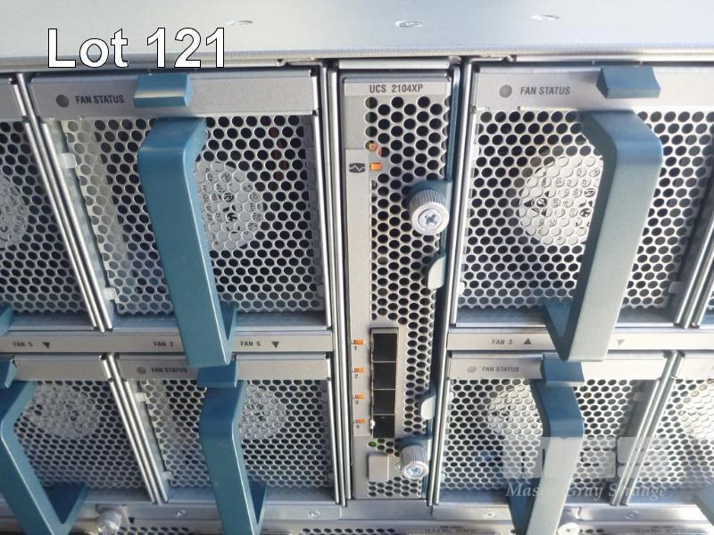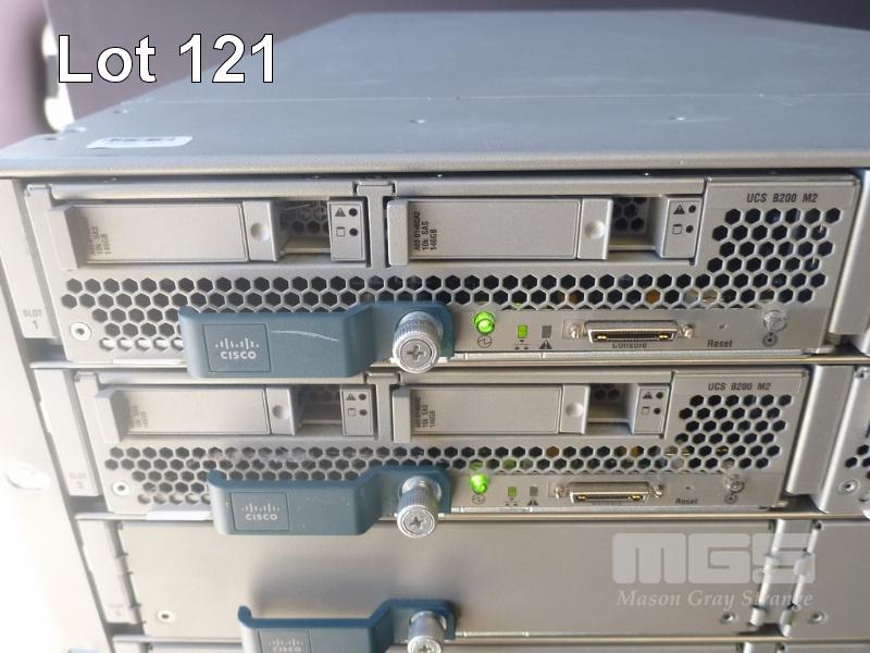 CISCO UCS 5108 BLADE SERVER ENCLOSURE, MODEL N20-C6508 WITH 4 x CISCO UCS B200 M2 BLADE SERVERS, EACH 2 x XEON SIX-CORE X5675 PROCESSORS @ 3.07GHz, 96GB RAM, 2 x 146GB SAS HDD (1 x NOT POWERING ON, 1 x WITH 24GB RAM) 2 x UCS 2104XP FABRIC EXTENDERS, WITH RAILS (NO CABLES) S/N:FOX1535GUUA