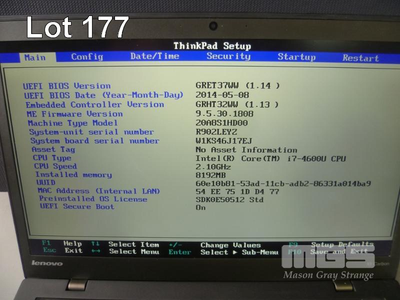 LAPTOP / ULTRABOOK, LENOVO THINKPAD X1 CARBON (20A8AS1HD00), CORE i7 4600U (4TH GEN) @ 2.1GHz, 8GB DDR3 RAM, 256GB SSD, 14" WIDESCREEN (1600x900), Wi-Fi, BLUETOOTH, WINDOWS 10 HOME INSTALLED, RECOVERY PARTITION & POWER SUPPLY S/N:R902LEYZ