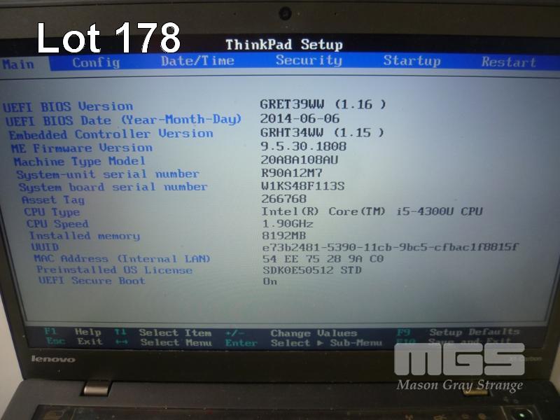 LAPTOP / ULTRABOOK, LENOVO THINKPAD X1 CARBON (20A8A108AU), CORE i5 4300U (4TH GEN) @ 1.9GHz, 8GB DDR3 RAM, 256GB SSD, 14" WIDESCREEN (1600x900), Wi-Fi, BLUETOOTH, WINDOWS 10 HOME INSTALLED, RECOVERY PARTITION & POWER SUPPLY S/N:R90A12M7