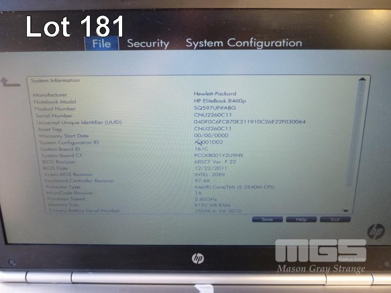 LAPTOP, HP ELITEBOOK 8460p (SQ597UP), CORE i5 2540M (2ND GEN) @ 2.6GHz, 8GB DDR3 RAM, 256GB SSD, DVD-RW, 14" WIDESCREEN (1600x900), INTEL VIDEO, Wi-Fi, BLUETOOTH, WINDOWS 7 PRO INSTALLED W/ LICENSE & POWER SUPPLY S/N:CNU2260C11