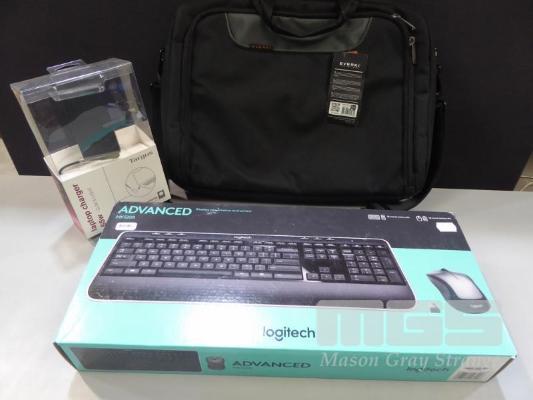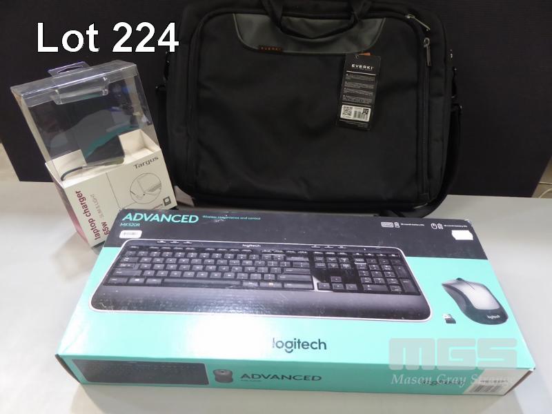 LOGITECH ADVANCED MK520R WIRELESS KEYBOARD & MOUSE, TARGUS 65W LAPTOP CHARGER, EVERKI ADVANCE 17.3" LAPTOP CARRY BAG