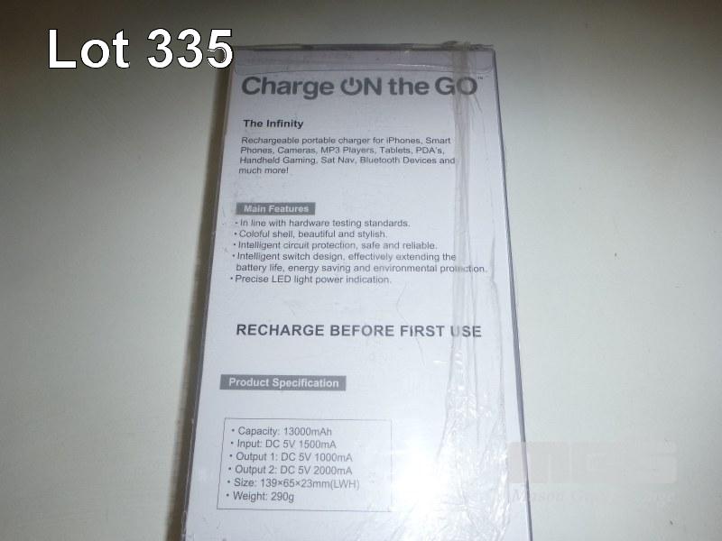 4 x CHARGE ON THE GO 13000mAh PORTABLE POWER CHARGERS, THE INFINITY, WHITE