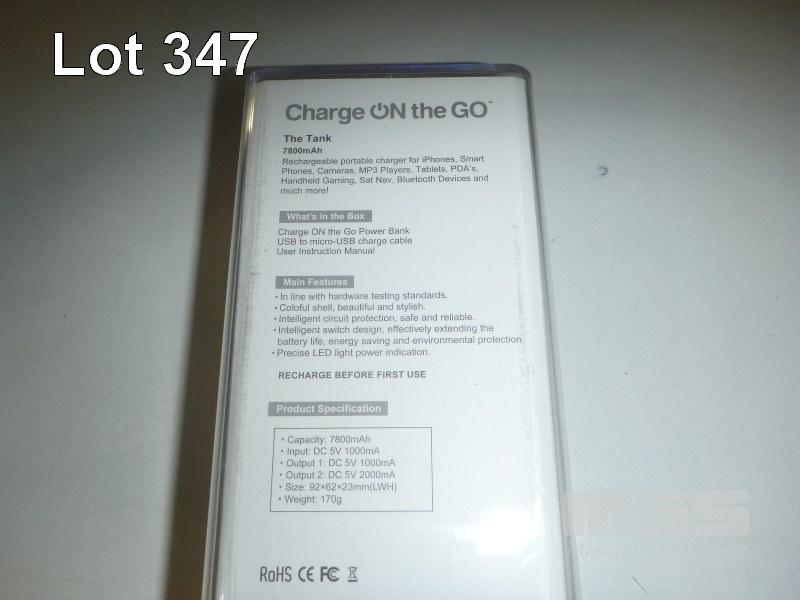 10 x CHARGE ON THE GO 7800mAh PORTABLE POWER CHARGERS, THE TANK, WHITE