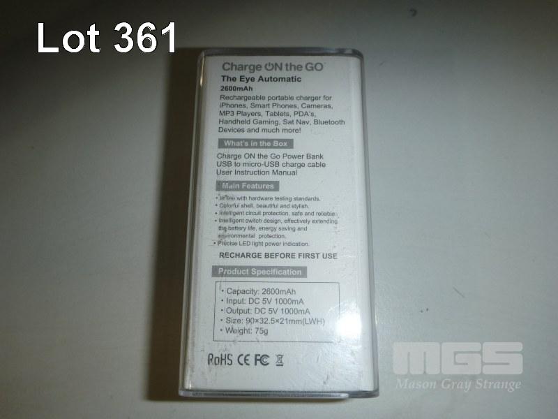 10 x CHARGE ON THE GO 2600mAh PORTABLE POWER CHARGERS, THE EYE, SILVER