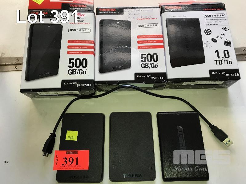 1 x TOSHIBA 1TB USB HARD DRIVE 2 x TOSHIBA 500GB USB HARD DRIVES (1 x USB 3.0 CABLE)