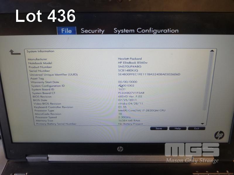 LAPTOP, HP ELITEBOOK 8560w (SN570UP), CORE i7 2820QM (2ND GEN) @ 2.3GHz, 16GB DDR3 RAM, 320GB SATA HDD, DVD-RW, 15.6" HD WIDESCREEN (1920x1080), 2GB NVIDIA QUADRO 2000M VIDEO, Wi-Fi, BLUETOOTH, WINDOWS 7 PRO INSTALLED W/ LICENSE & POWER SUPPLY (NOT DETECTING BATTERY) S/N:5CB1480KJQ