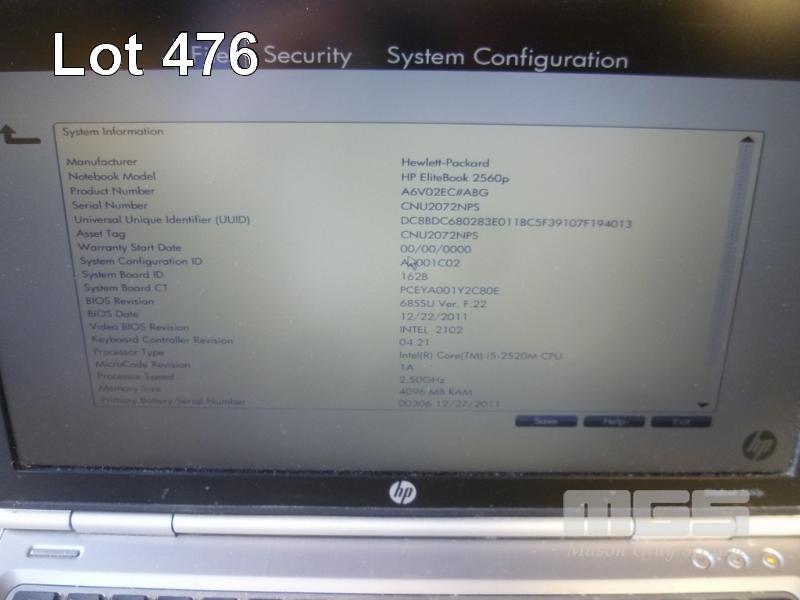LAPTOP, HP ELITEBOOK 2560p (A6V02EC), CORE i5 2520M (2ND GEN) @ 2.5GHz, 4GB DDR3 RAM, 500GB SATA HDD, DVD-RW, 12.5" WIDESCREEN (1366x768), INTEL HD VIDEO, Wi-Fi, BLUETOOTH, WINDOWS 7 PRO INSTALLED W/ LICENSE & POWER SUPPLY S/N:CNU2072NPS