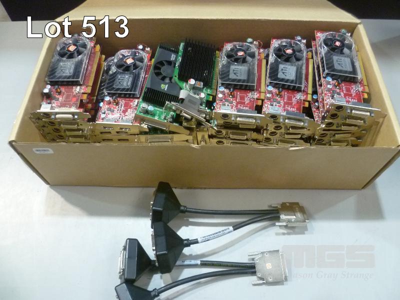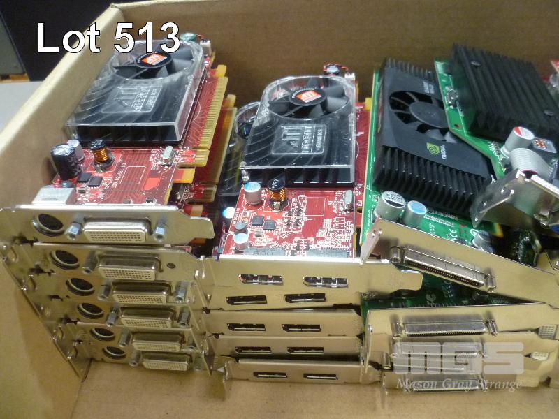 1 x BOX ASST VIDEO CARDS INC. 21 x ATI RADEON HD3450 256MB LOW-PROFILE PCI-e VIDEO CARDS 5 x ATI RADEON HD3470 256MB LOW-PROFILE PCI-e VIDEO CARDS 6 x ATI RADEON HD2400 XT 256MB LOW-PROFILE PCI-e VIDEO CARDS 5 x NVIDIA QUADRO NVS 420 512MB LOW-PROFILE VIDEO CARDS 2 x NVIDIA QUADRO NVS 290 256MB LOW-PROFILE VIDEO CARDS 1 x NVIDIA GEFORCE 8400GS 512MB LOW-PROFILE VIDEO CARD
