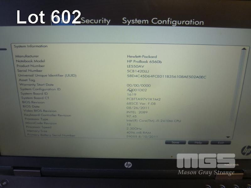 LAPTOP, HP PROBOOK 6560b (LE550AV), CORE i5 2410M (2ND GEN) @ 2.3GHz, 4GB DDR3 RAM, 500GB SATA HDD, DVD-RW, 15.6" WIDESCREEN (1366x768), INTEL HD VIDEO, Wi-Fi, BLUETOOTH & DOCKING STATION WITH POWER SUPPLY (NOT DETECTING BATTERY, UNABLE TO INSTALL WINDOWS, CHIP ON SCREEN) S/N:5CB1420LLJ