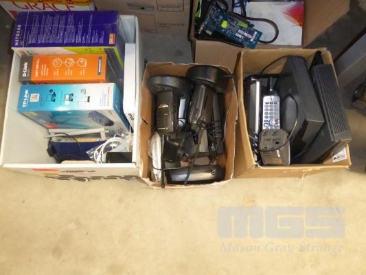 3 x BOXES ASST MODEMS, ROUTERS, TWO-WAY RADIOS, ETC
