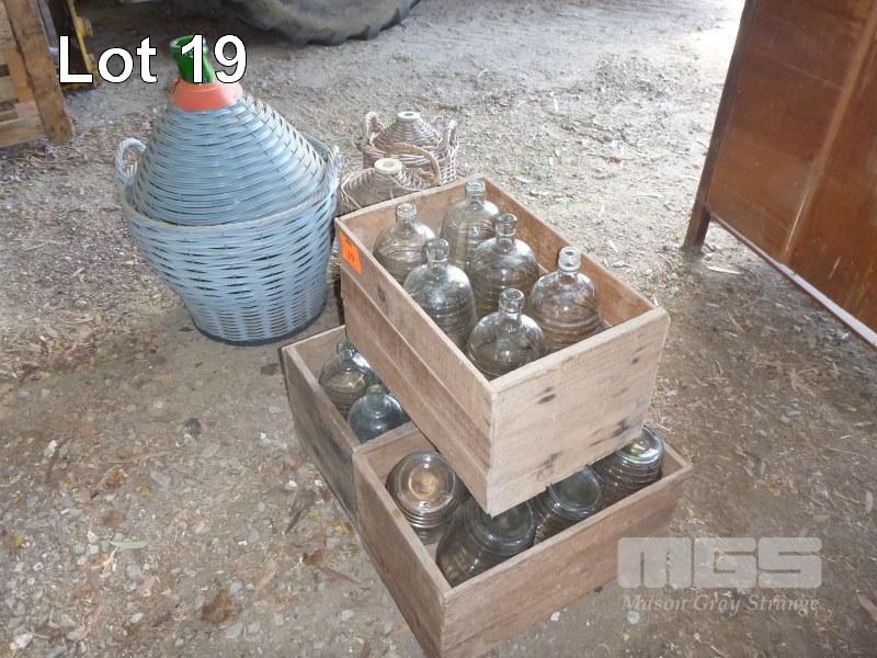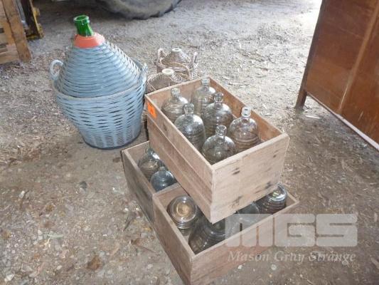 ASSORTED CERAMIC & WINE DEMIJOHNS & 1/2 GALLON CONTAINERS