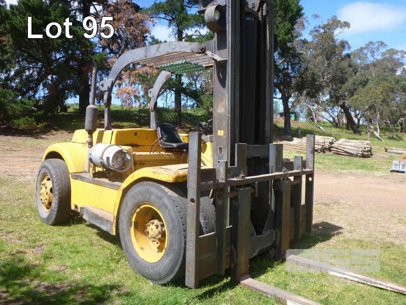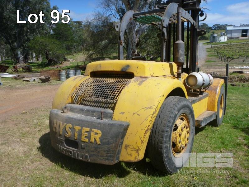 HYSTER FORLIFT CAPACITY: 8 TONNE LIFT LPG, 6 CYLINDERENGINE. , PNEUMATIC TYRES, DUAL FRONTS, 3200mm MAST HEIGHT DOWN. 1500 MM FORKS , 4 SPD . MANUAL. (GAS BOTTLE NOT INCLUDED) (NO PAPERS, NO OWNER'S MANUAL, NO SERVICE BOOKS)