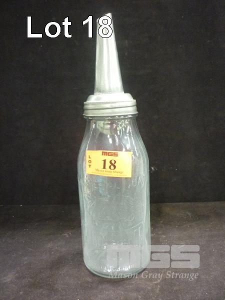 GOLDEN FLEECE EMBOSSED OIL BOTTLE, 1 IMPERIAL QUART WITH CLEAN SKIN TIN TOP (RE-MADE)