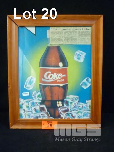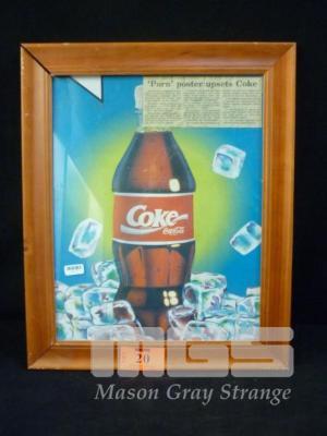 COCA-COLA FRAMED "PORN POSTER" WITH NEWSPAPER CLIPPING