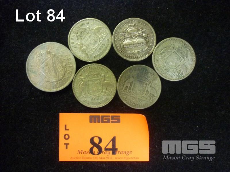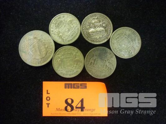 5 X AUSTRALIA FLORINS & 1 X BRITISH, 1959, HALF CROWN