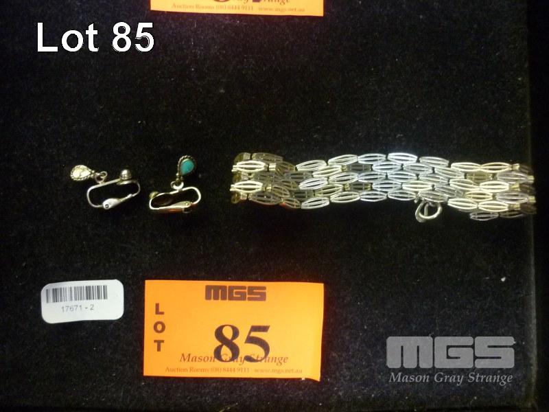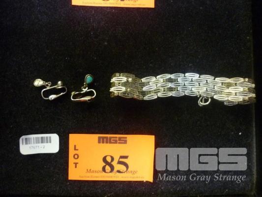 PAIR STERLING SILVER EARRINGS & BRACELET
