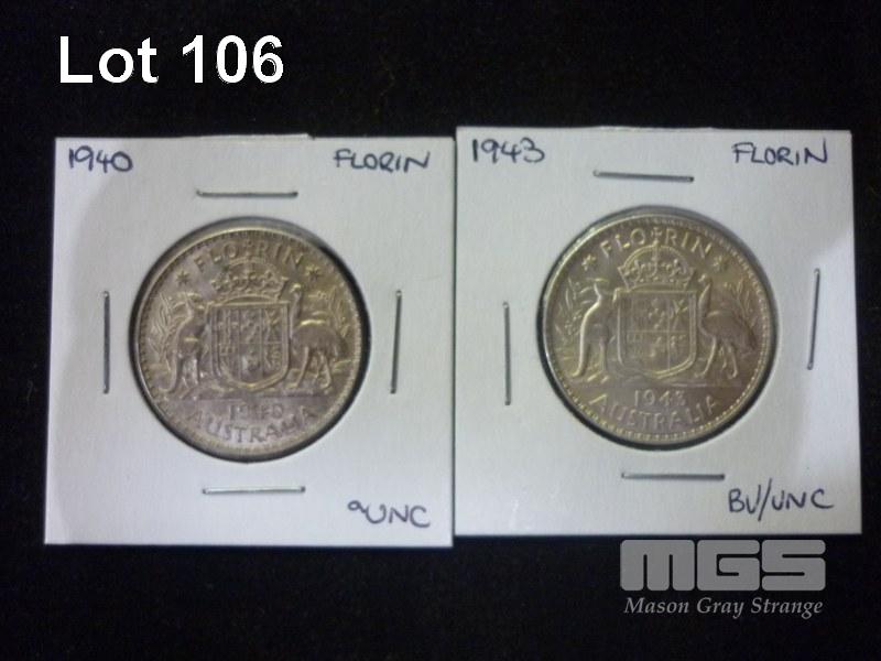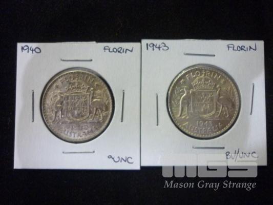 1940 & 1943 FLORINS UNC (RARE AT THIS GRADE)