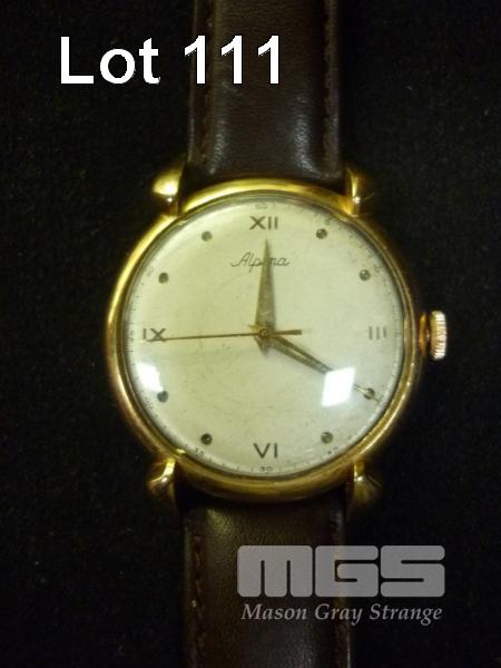 MENS WRIST WATCH, ALPHA FAB SUISSE, 18CT