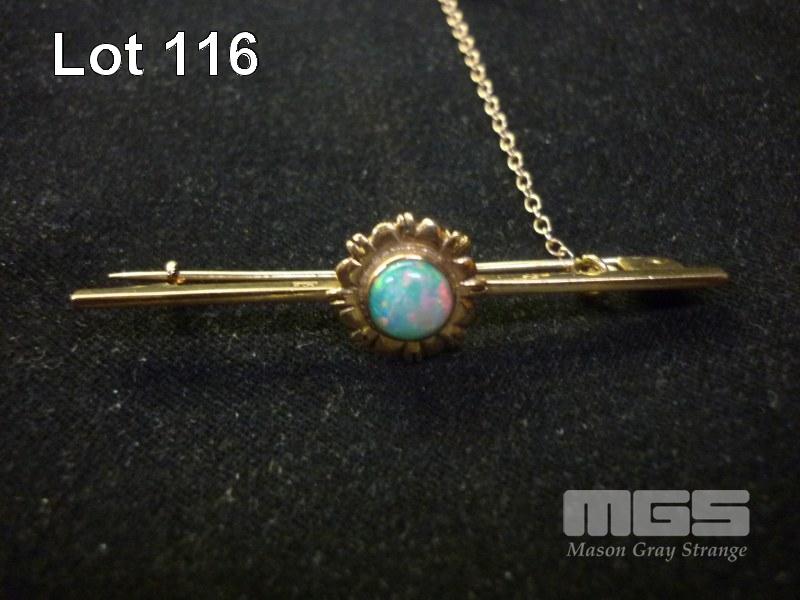 GOLD BROOCH, SET WITH OPAL, MARKED 9CT