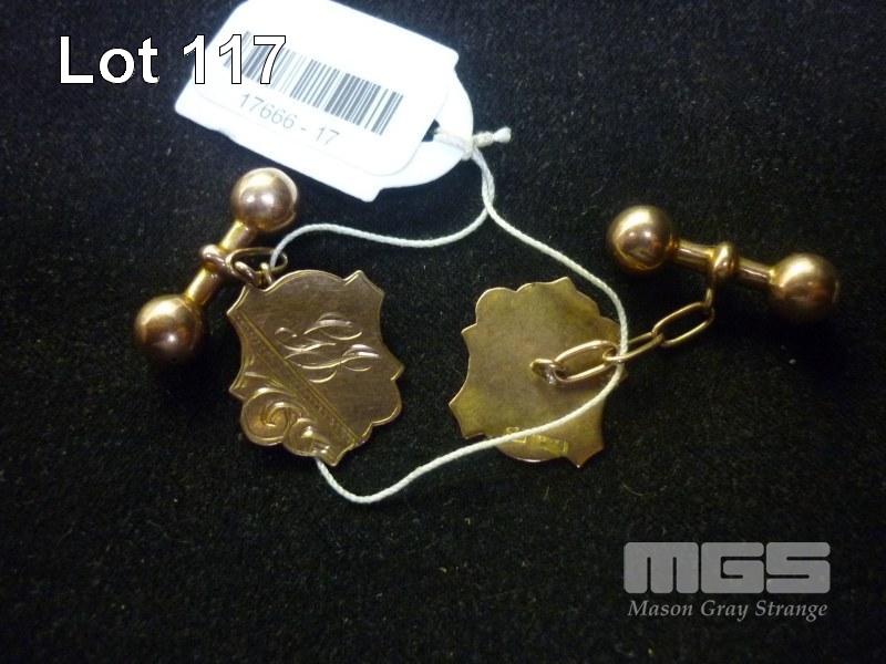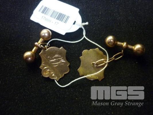 PAIR OF ROSE GOLD CUFF LINKS, MARKED 9C