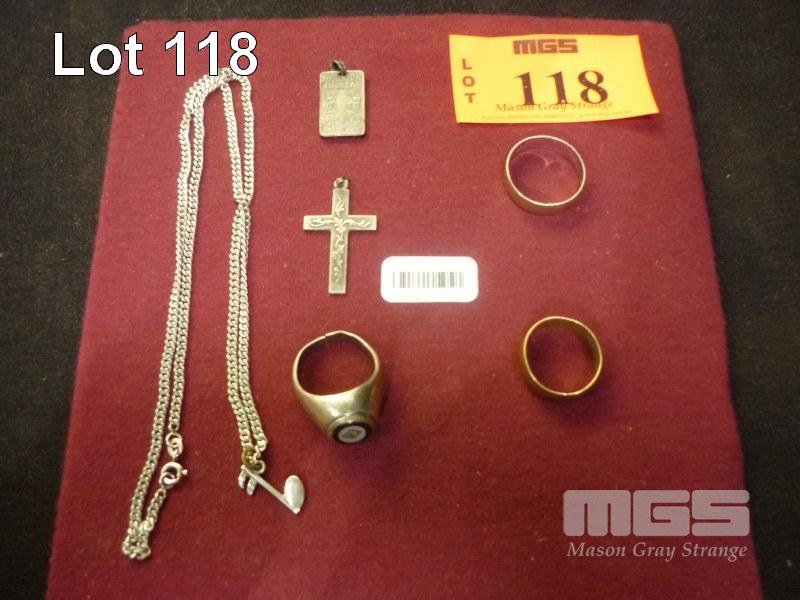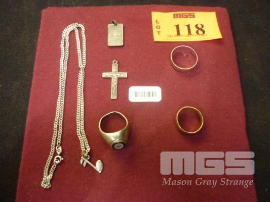2 x GOLD RINGS, YELLOW GOLD MARKED 9ct AND WHITE GOLD MARKED 375, WITH ASSORTED STERLING SILVER JEWELLERY