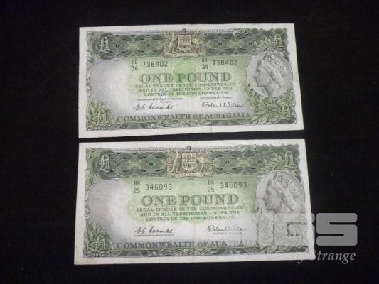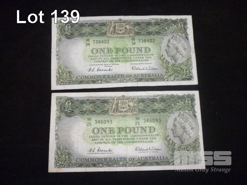2 x AUSTRALIAN PRE-DECIMAL COOMBS/WILSON 1LB BANK NOTES