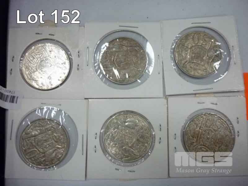 6 x AUSTRALIAN ROUND 1966, .50c PIECES