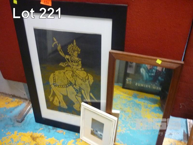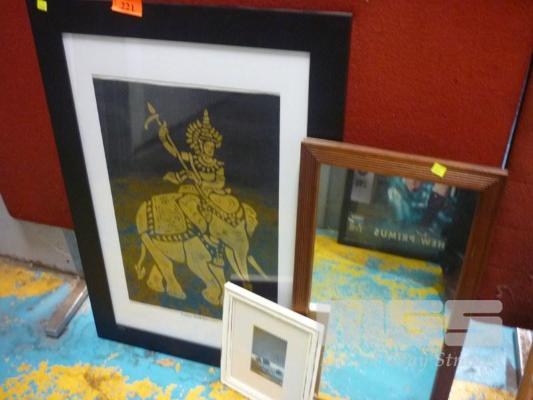 FRAMED PAINTING FROM LAOS, SMALL PHOTOGRAPH & FRAMED MIRROR