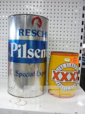 PILSENER BEER TIN & 4 x MONEY BOXES