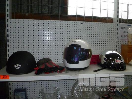3 x MOTOR CYCLE HELMETS & PAIR GAUNLETS