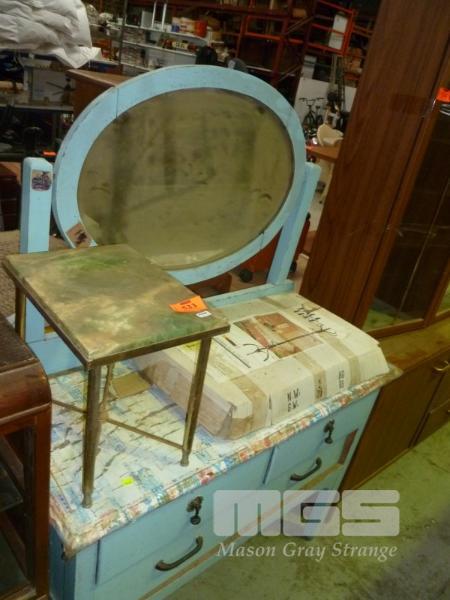 BLUE PAINTED TIMBER DRESSER, TILT MIRROR, HALL TREE (FLAT PACK) & SMALL GRANITE TOP SIDE TABLE