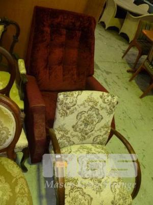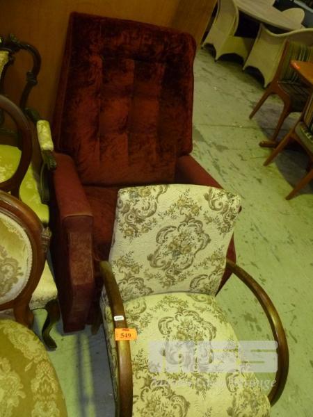BURGUNDY FABRIC RECLINER & ARMCHAIR