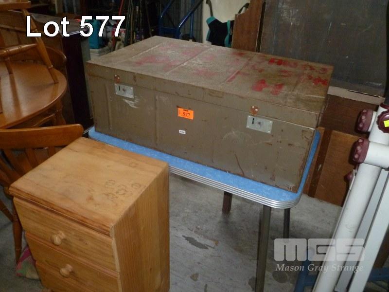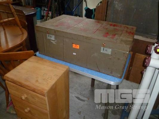 METAL TRUNK, RETRO KITCHEN TABLE & PINE 4 DRAWER SIDE CABINET