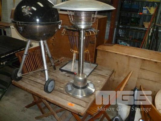 TEAK TABLE & CHAIRS, KETTLE BBQ, GAS HEATER & BRAZIER
