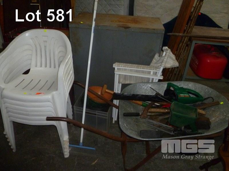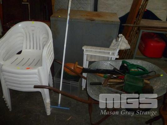 GARDEN TOOLS, WHEELBARROW & OUTDOOR CHAIRS