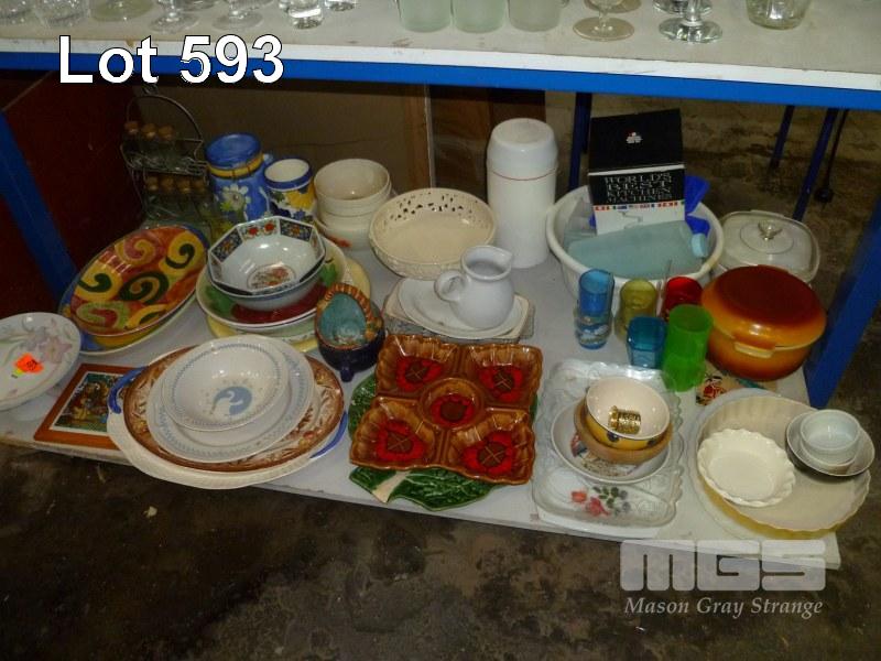 ASSORTED SERVINGWARE, KITCHENWARE, ETC