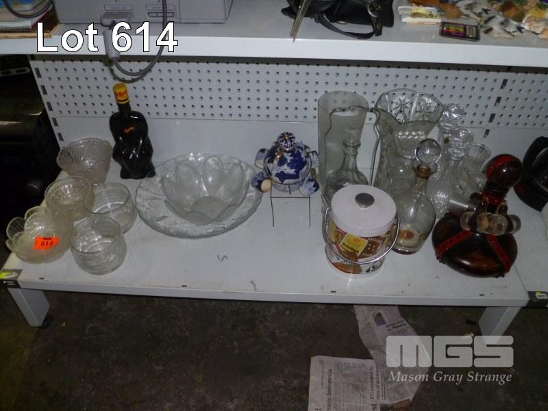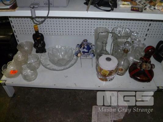 ASSORTED DECANTERS & GLASS BOWLS