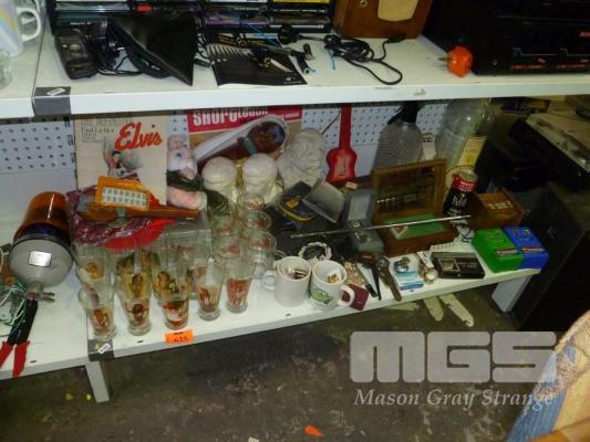 ELVIS MEMORABILIA, BEER GLASSES, SODO BOTTLE ETC