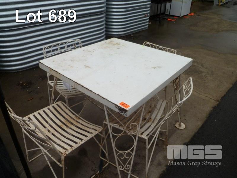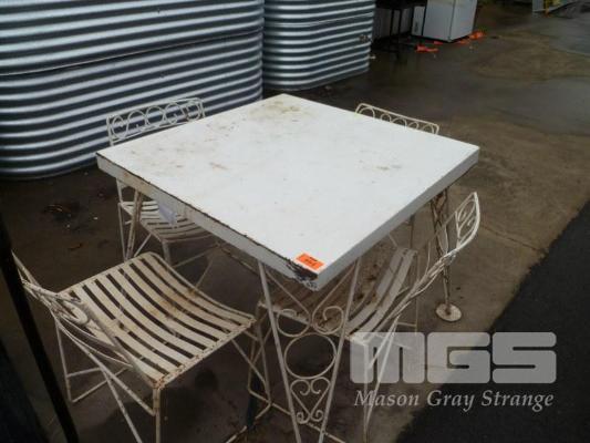 OUTDOOR SETTING, 5 PIECE, WROUGHT IRON FRAMED TABLE & 4 X CHAIRS
