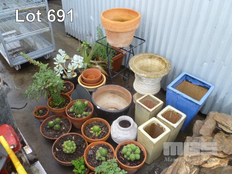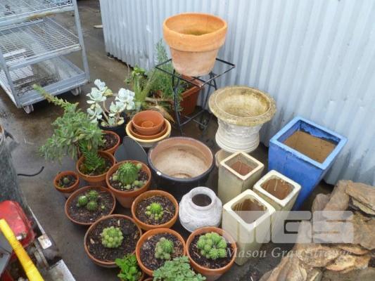 LARGE COLLECTION POTS & PLANTS, GLAZED TERRACOTTA & SUCCULENTS