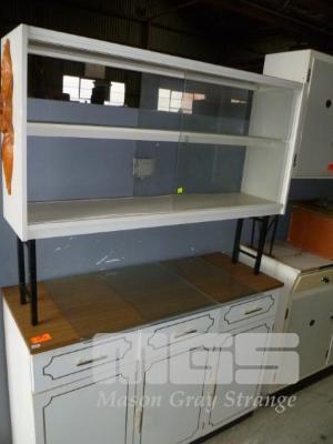 ROOM DIVIDER, LAMINATE, 3 DRAWER/DOOR. GLASS SLIDING DOORS