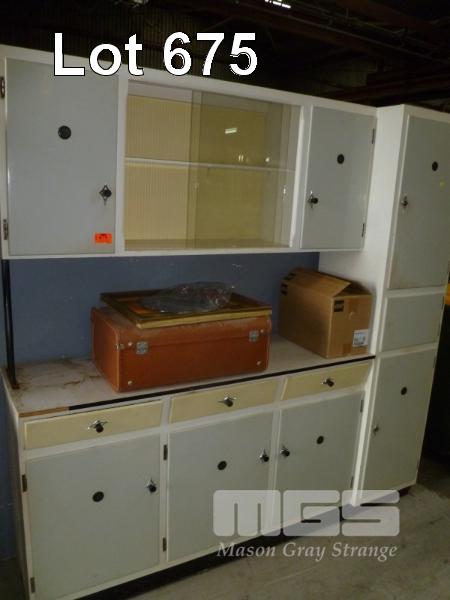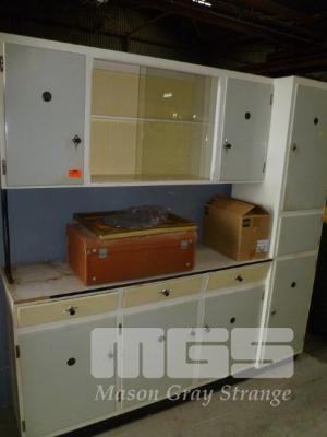 WHITE PAINTED, TIMBER, KITCHEN CABINET, 8 DOORS, 3 DRAWER, 2 GLASS SLIDING DOORS