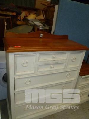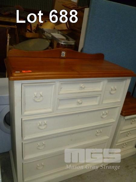 PINE & WHITE WASH PAINTED TIMBER CHEST OF 7 DRAWERS