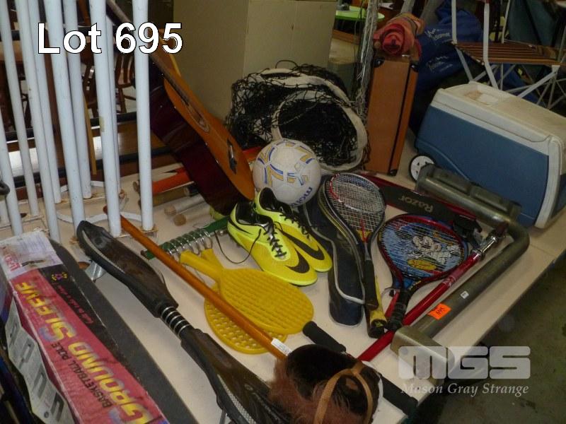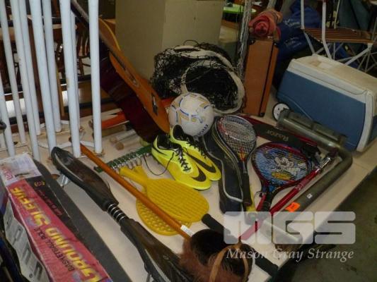 LARGE COLLECTION SPORTING GEAR, CRICKET, TENNIS NET, BIKE CARRIER, SKATEBOARD ETC