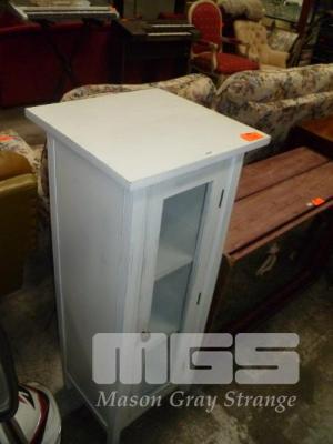 WHITE PAINTED, TIMBER, SINGLE DOOR CABINET, GLASS DOOR, 3 TIER