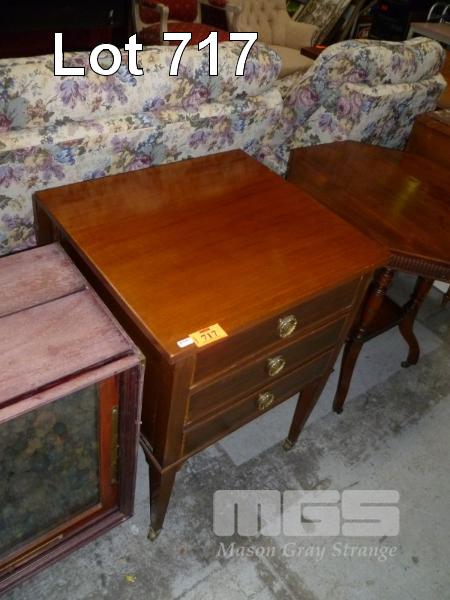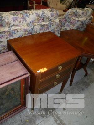 MAHOGANY & WALNUT SIDE CABINET, 3 DRAWER
