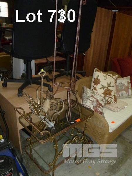 DECORATIVE BRASS TRAYMOBILE, MAGAZINE RACK & PLANT JARDINIERE