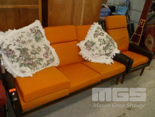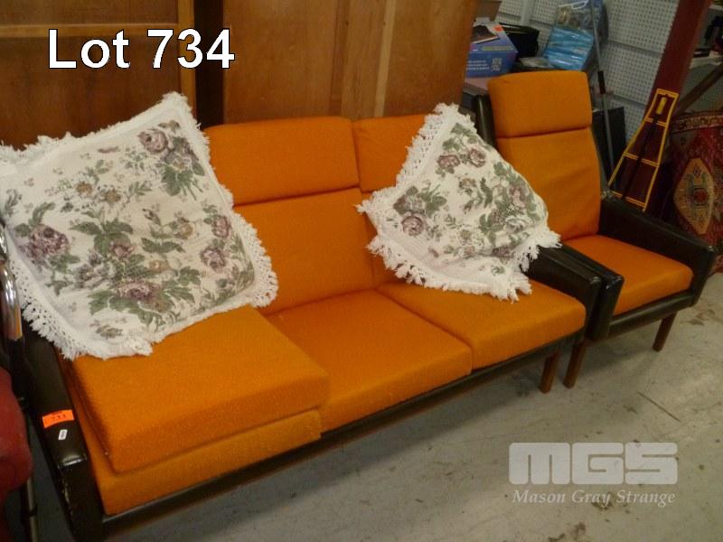 RETRO 2 PIECE LOUNGE SUITE, 3 SEATER & ARM CHAIR, ALL FAULTS