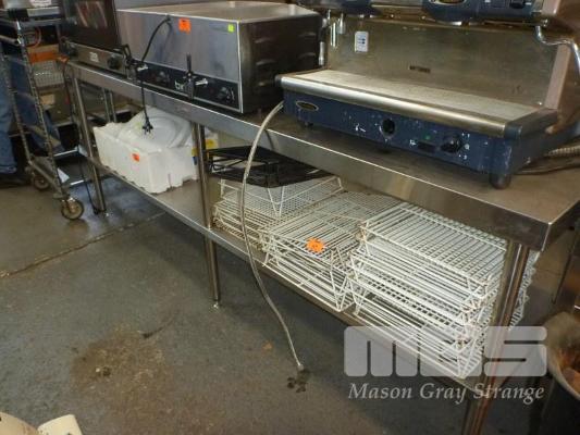 STAINLESS STEEL BENCH, 240 x 60cm, 2 TIER WITH SPLASHBACK