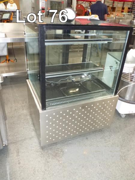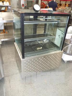 FED SG090FA-2XB SQUARE GLASS CAKE DISPLAY 90cm, SELF CONTAINED UNIT, 240V (NOTE: 1 x SHELF MISSING)
